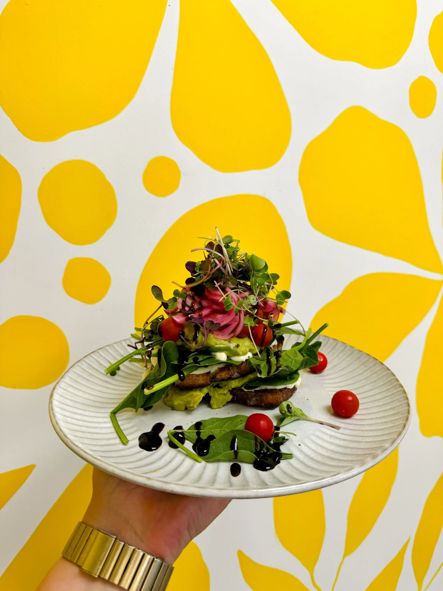 Savoury: Creamy mushrooms, honey yoghurt, salsa verde, and halloumi